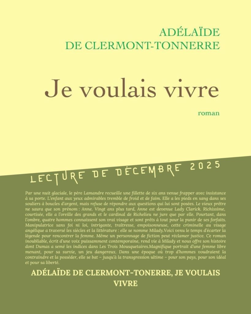 Fiche de lecture – Je voulais vivre d’Adélaïde de Clermont-Tonnerre